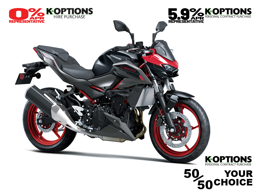 No matter from what angle the Z500 is seen, its triple headlightcentred front face and aggressive lines make it clear that this is a member of the Z family, with aggressive Supernaked looks and ample street presence.